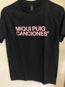Camiseta “Miqui Puig Canciones” Posted on novembre 13, 2025novembre 13, 2025 by miquipuig 18,00 € Talla Choose an optionLMSXLXXLClear Camiseta "Miqui Puig Canciones" quantity Add to cart SKU: N/A Category: Samarretes Description Additional information Description Additional information Talla L, M, S, XL, XXL Related products Camiseta “Jo ballo Pista de Fusta” 18,00 € Select options Bufanda 10,00 € Add to cart Camiseta LAV (logo Verde) 10,00 € Select options Camiseta Aniversario “15 canciones de amor, barro y motocicletas” LAV034 20,00 € Select options